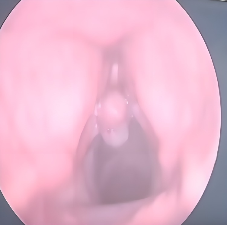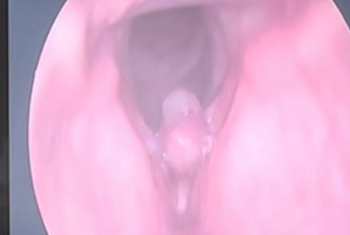 Patient with voice change since few years , Videolaryngoscopy shows Polyp arising from left Vocal cord