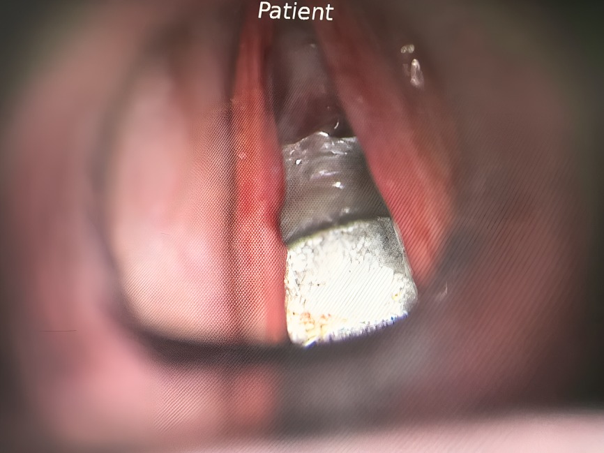 Intra operative Left vocal cord lesion Excision done . MICROLARYNGOSCOPY with LASER surgery done