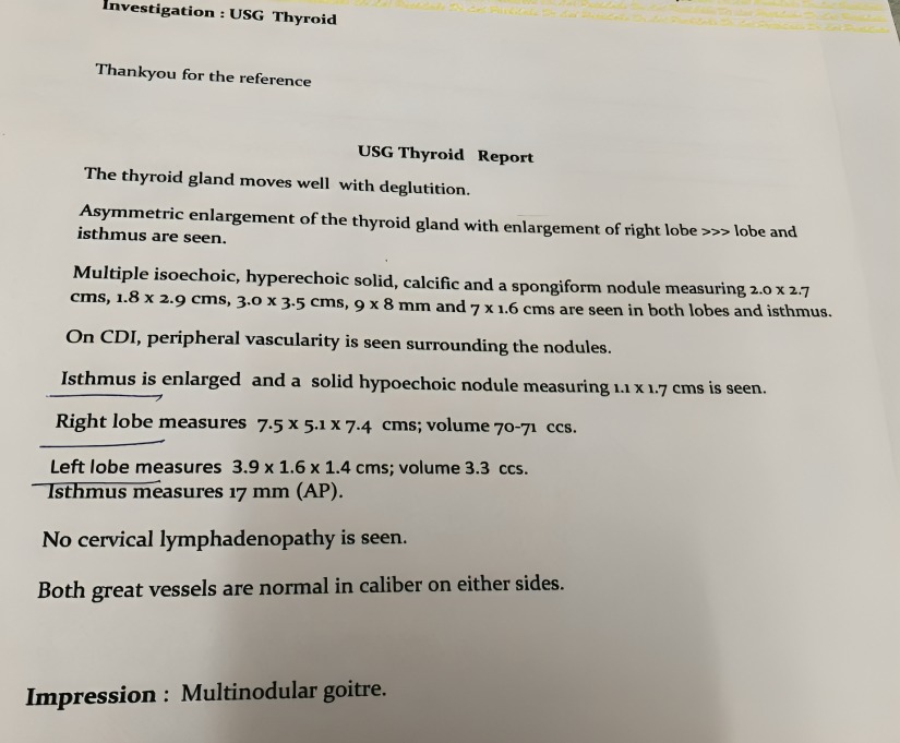 Usg showing Multinodular goitre