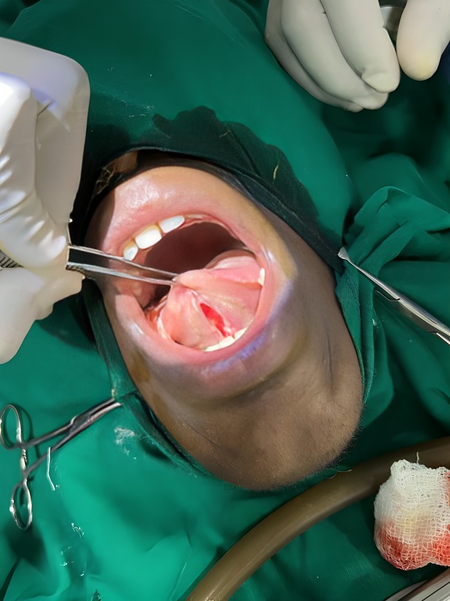 Tongue tie release surgery is being done